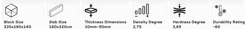 The homogeneous structure of Sebaste Moire, which requires no selection for expansive applications, along with its exceptional polishing capabilities, are among its key advantages. With a density of 2.75 and a hardness of 3.65, it exceeds the typical criteria sought in marble, and its structure can withstand temperatures as low as -60 degrees.